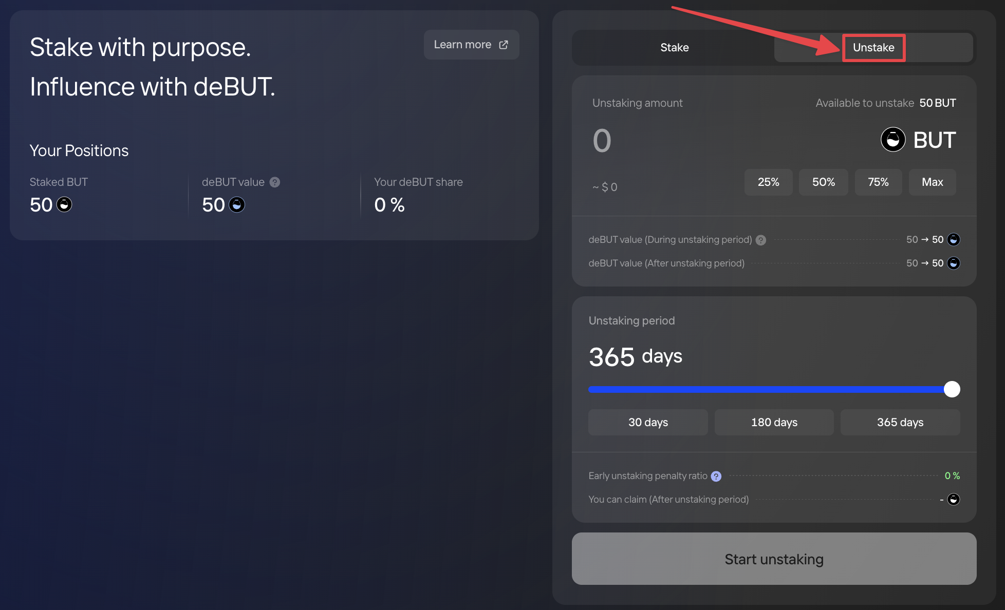 ### How to unstake BUT (Step-by-step)